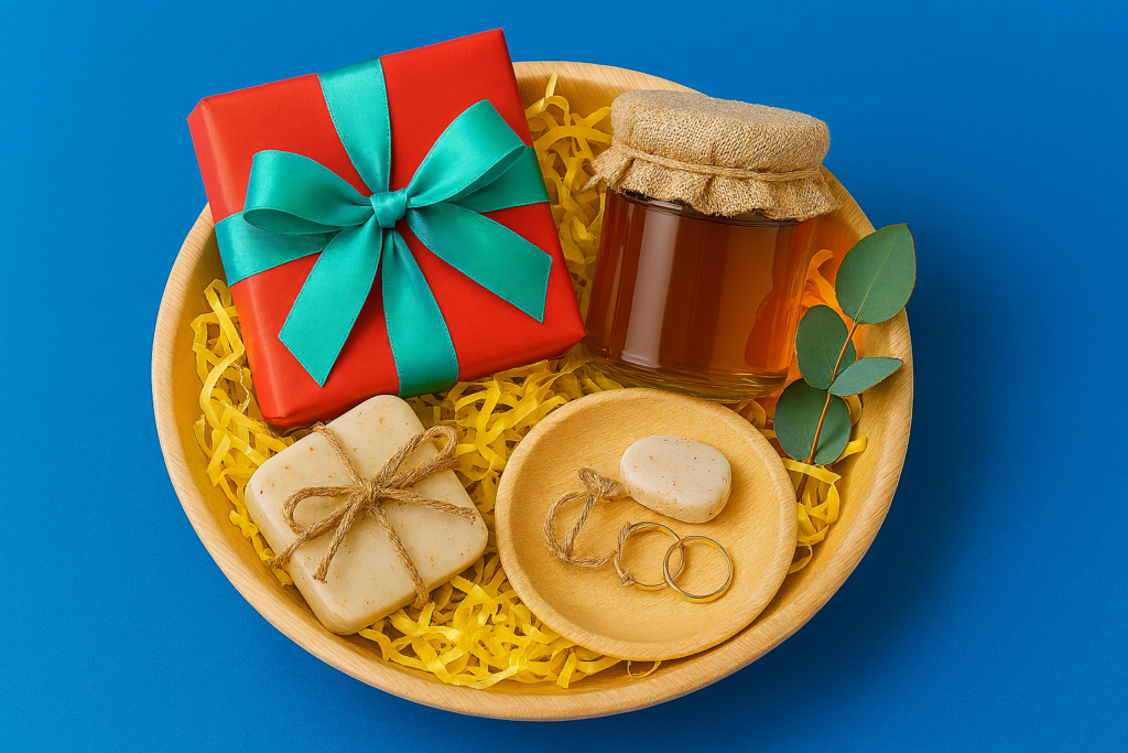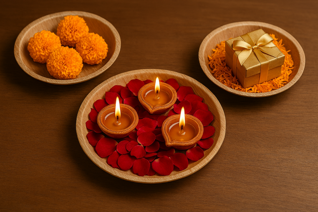 Replace plastic gift boxes with beautifully decorated areca plates filled with goodies like sweets, dry fruits, or handmade crafts. They serve as both packaging and a useful eco-friendly item for the recipient.