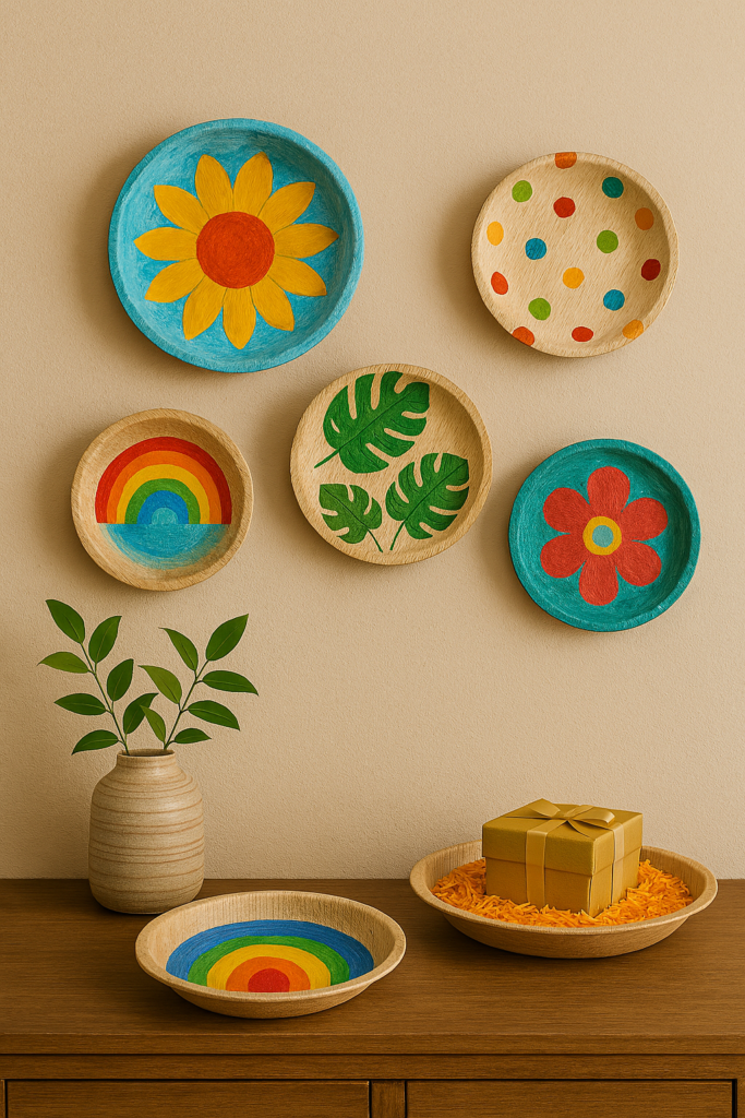 Artists and eco-conscious designers are turning areca leaf plates into stunning wall installations. Painted, woven, or arranged in patterns, they transform into sustainable artwork that adds character to homes and offices.
