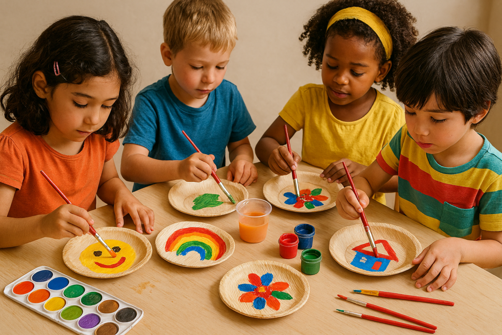 Parents and teachers love areca leaf plates as craft materials. They are safe, biodegradable, and provide a sturdy surface for painting, cutting, or shaping into creative art projects. It’s a fun way to introduce children to sustainable living.